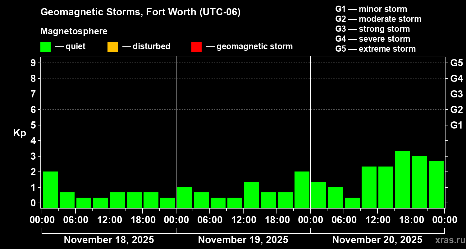 Geomagnetic storms in Fort Worth — Nov 20, 2025