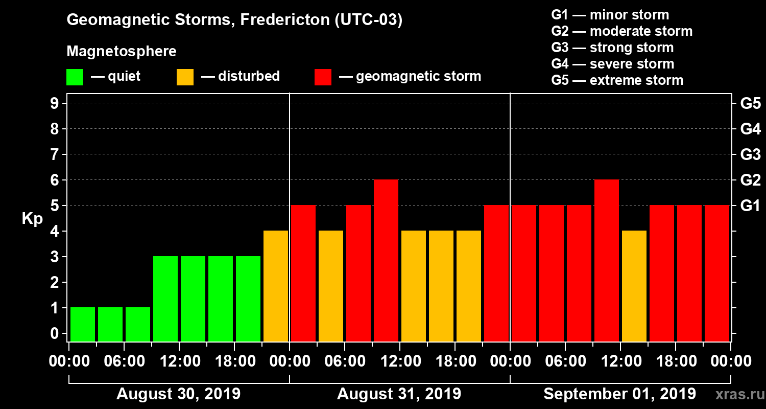 Geomagnetic storms in Fredericton on Sep 01, 2019