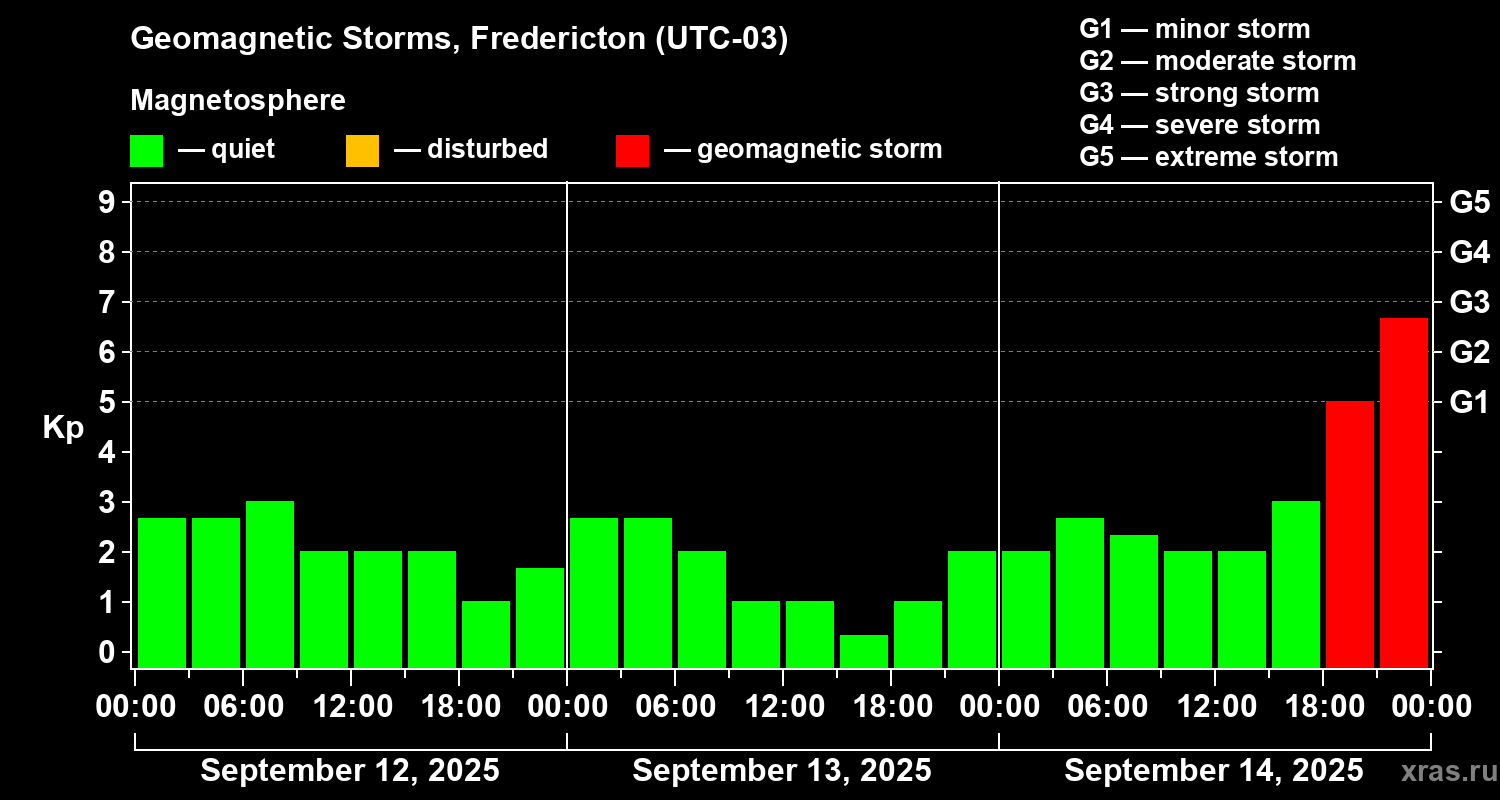 Geomagnetic storms in Fredericton on Sep 14, 2025