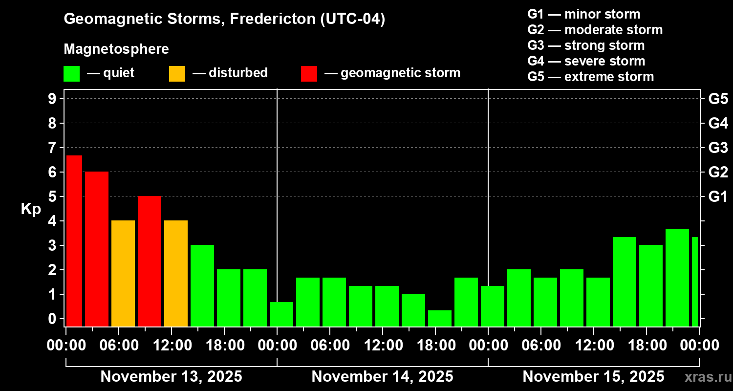 Geomagnetic storms in Fredericton — Nov 15, 2025