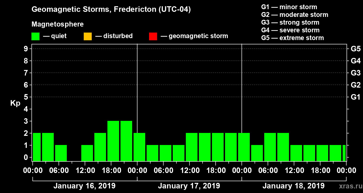 Geomagnetic storms in Fredericton in January 2019