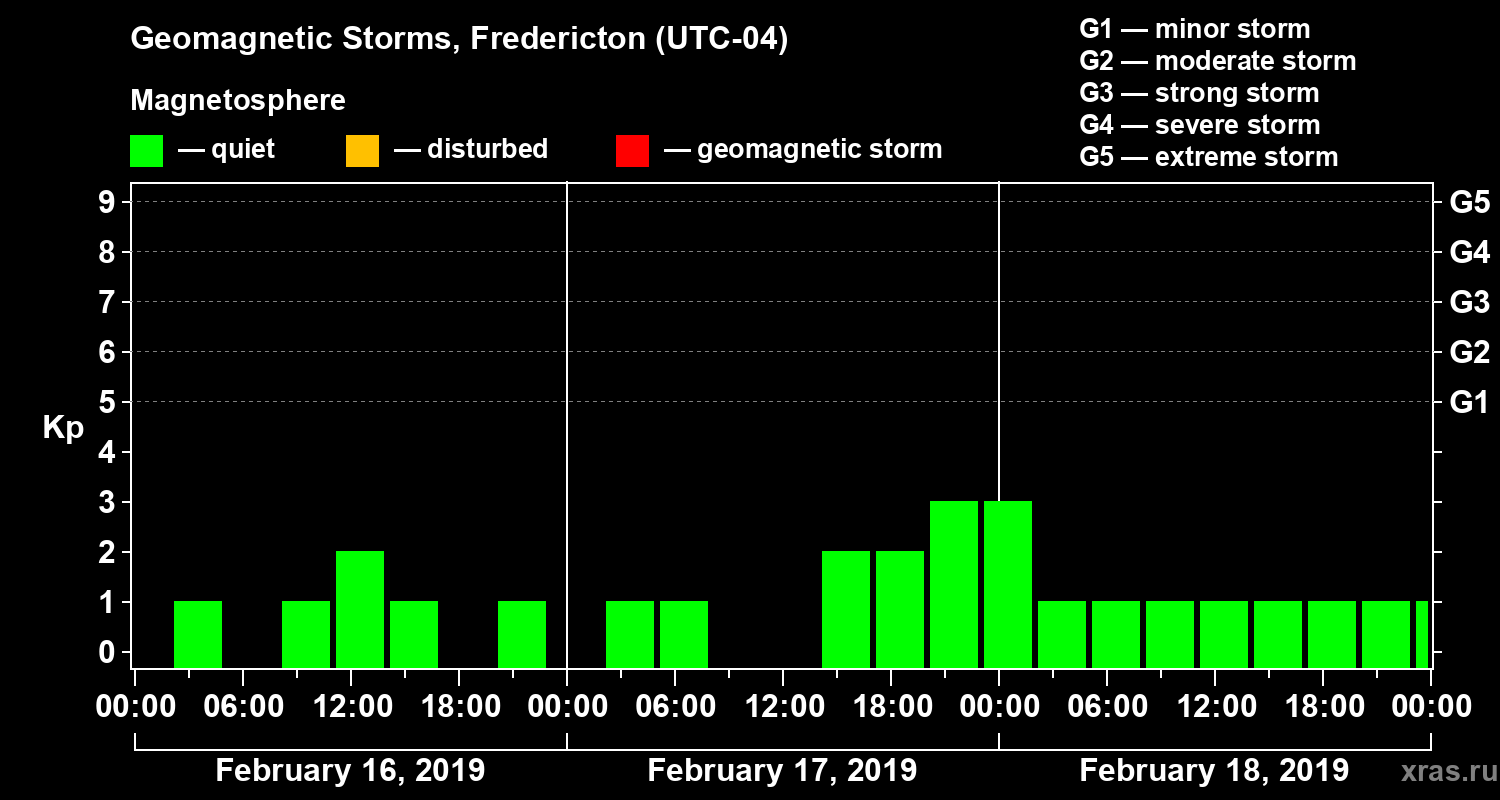 Geomagnetic storms in Fredericton in February 2019