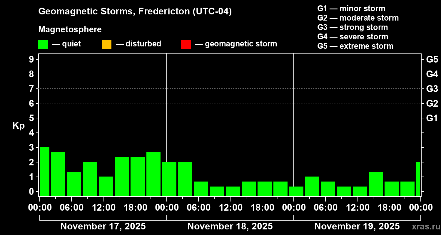 Geomagnetic storms in Fredericton on Nov 19, 2025