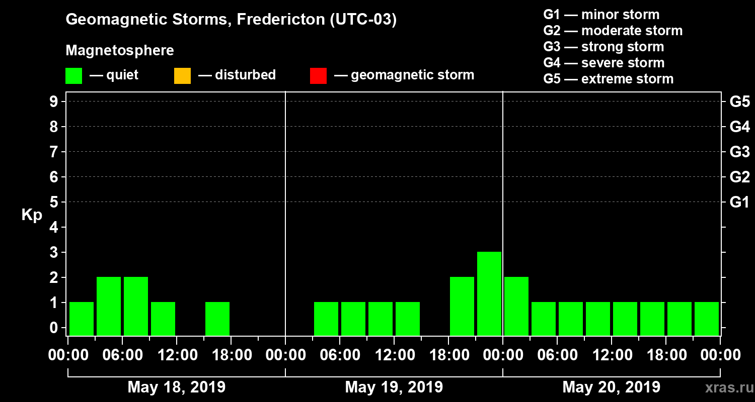 Geomagnetic storms in Fredericton on May 20, 2019