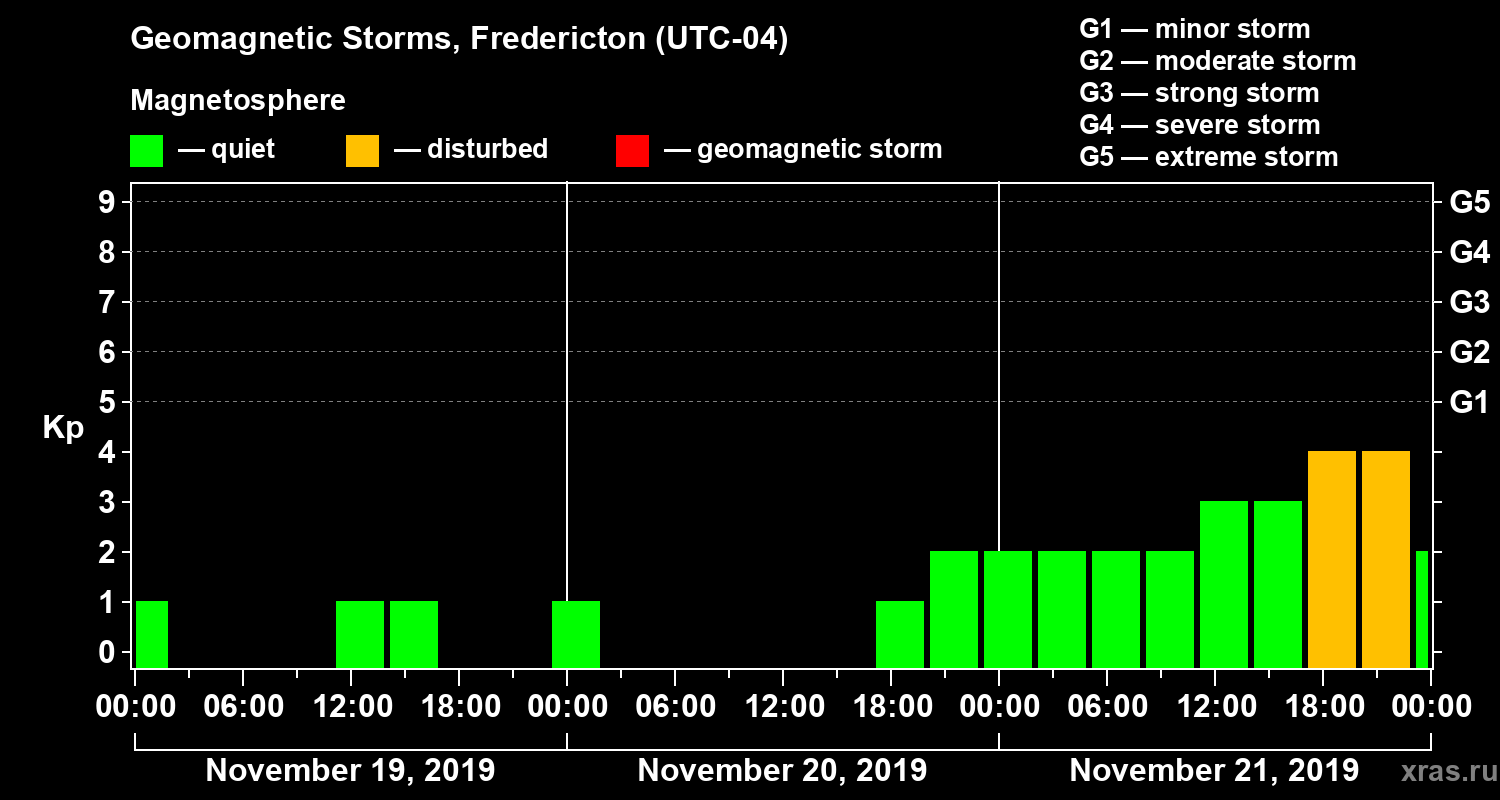 Geomagnetic storms in Fredericton on Nov 21, 2019