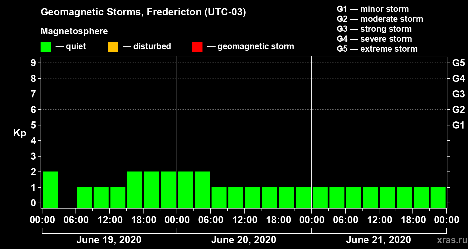 Geomagnetic storms in Fredericton on Jun 21, 2020
