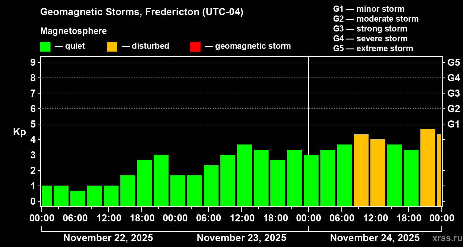 Geomagnetic storms in Fredericton on Nov 24, 2025