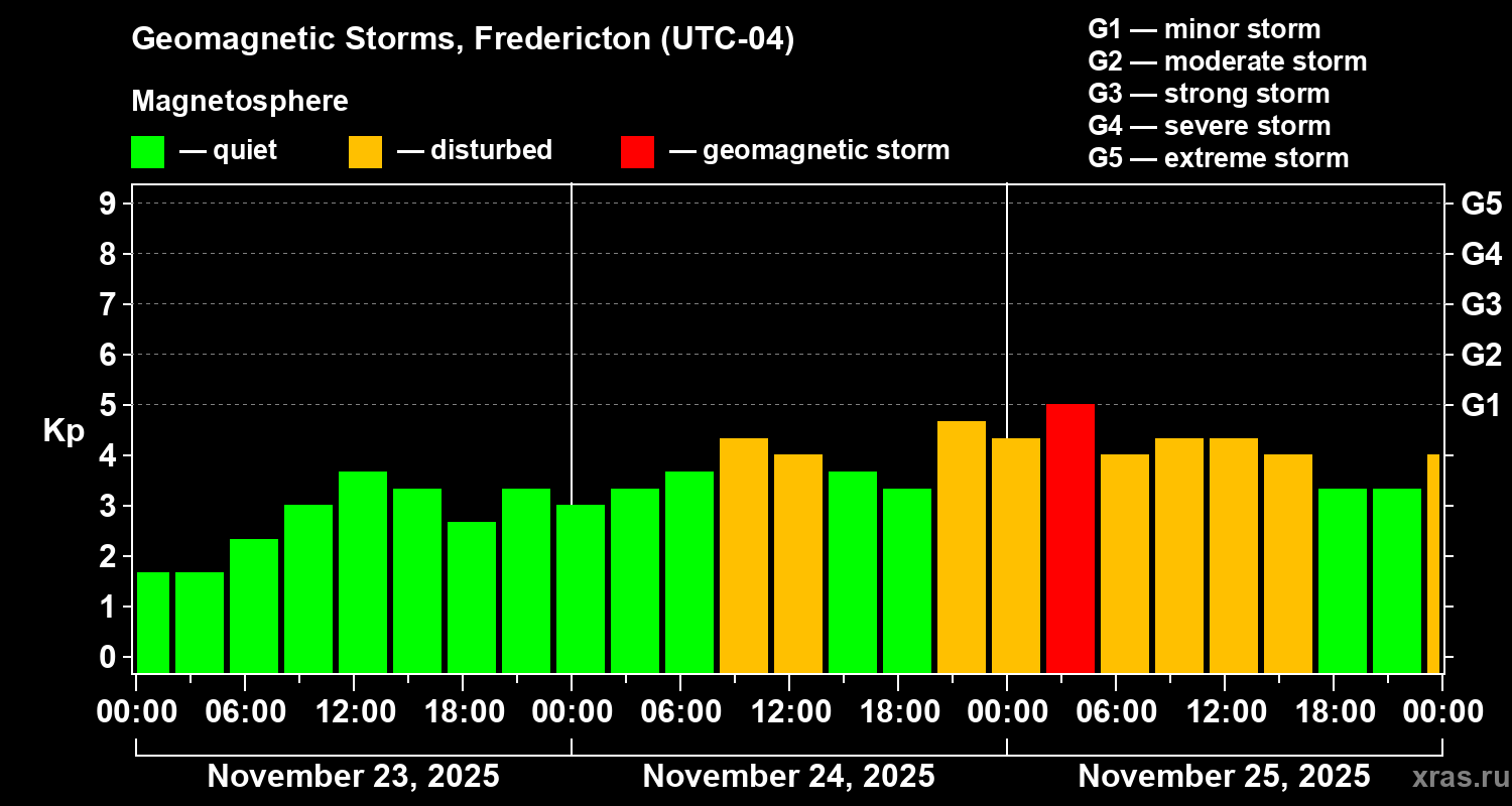Geomagnetic storms in Fredericton on Nov 25, 2025