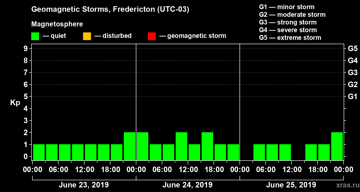 Geomagnetic storms in Fredericton on Jun 25, 2019