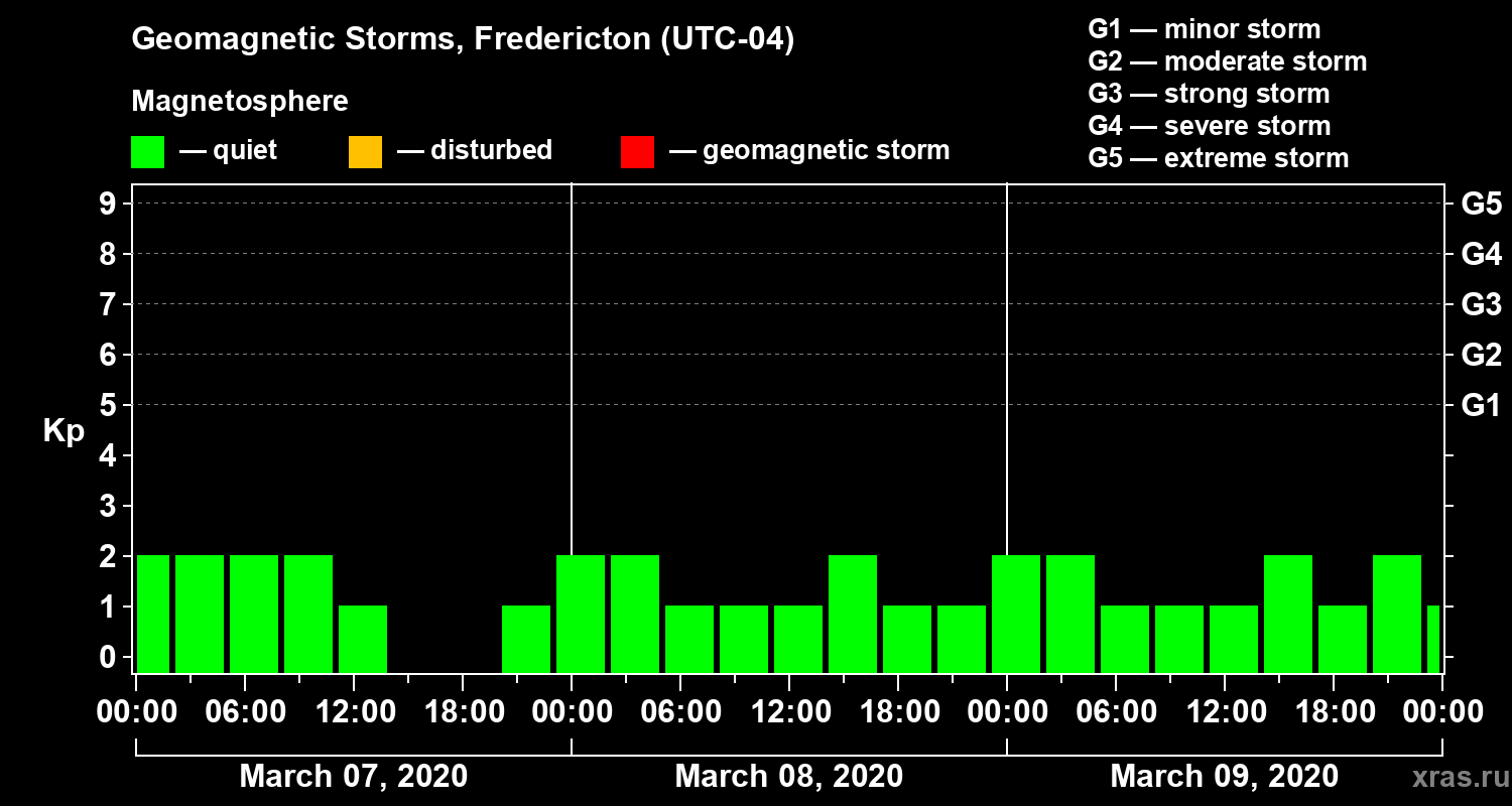 Geomagnetic storms in Fredericton on Mar 09, 2020