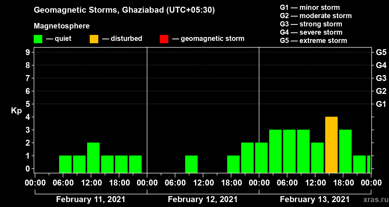 Geomagnetic storms in Ghaziabad — Feb 13, 2021