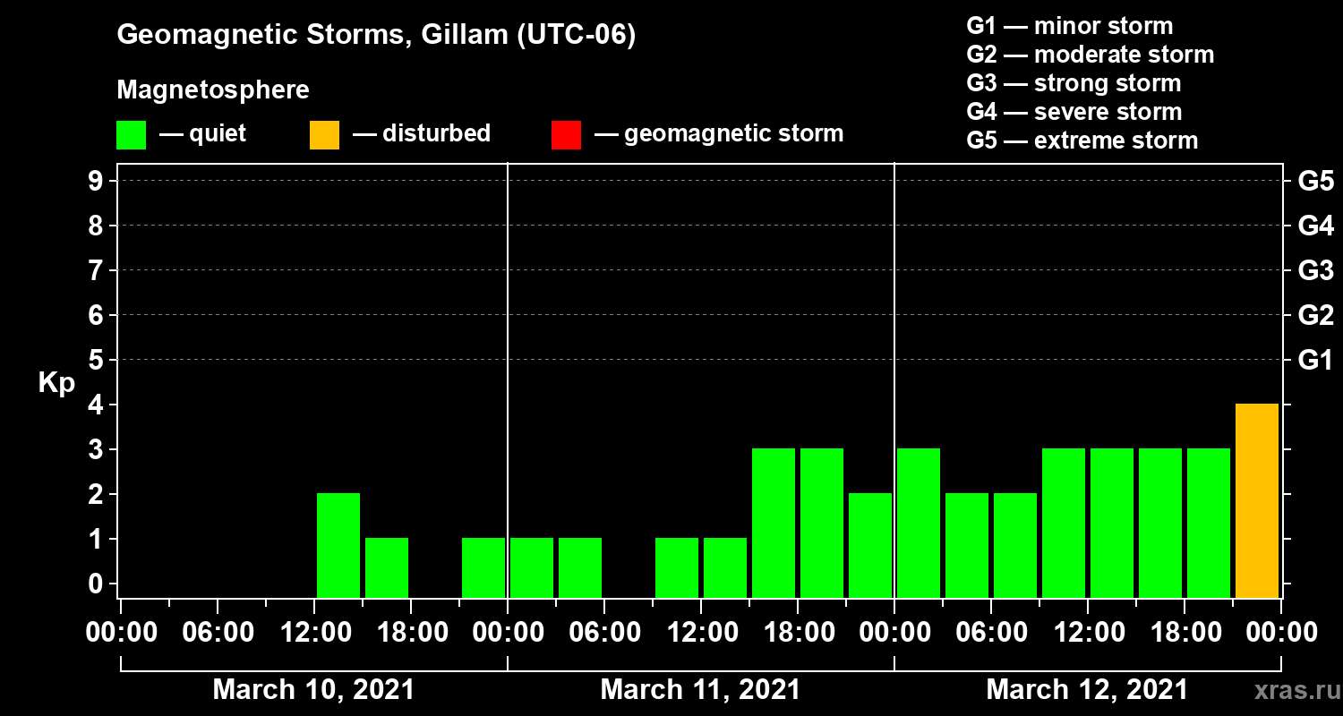 Geomagnetic storms in Gillam — Mar 12, 2021