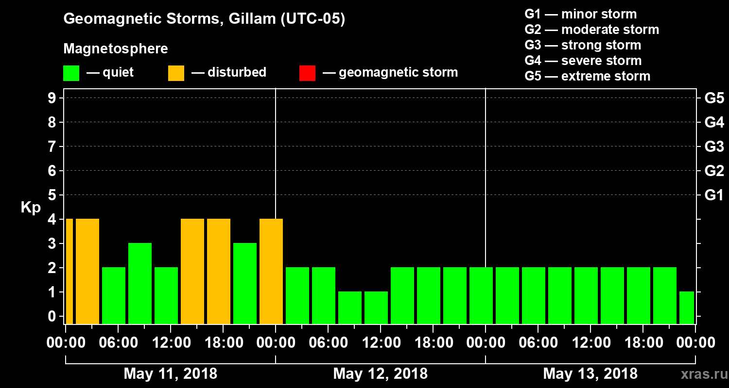 Geomagnetic storms in Gillam — May 13, 2018