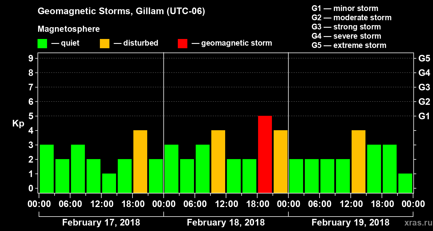 Geomagnetic storms in Gillam — Feb 19, 2018