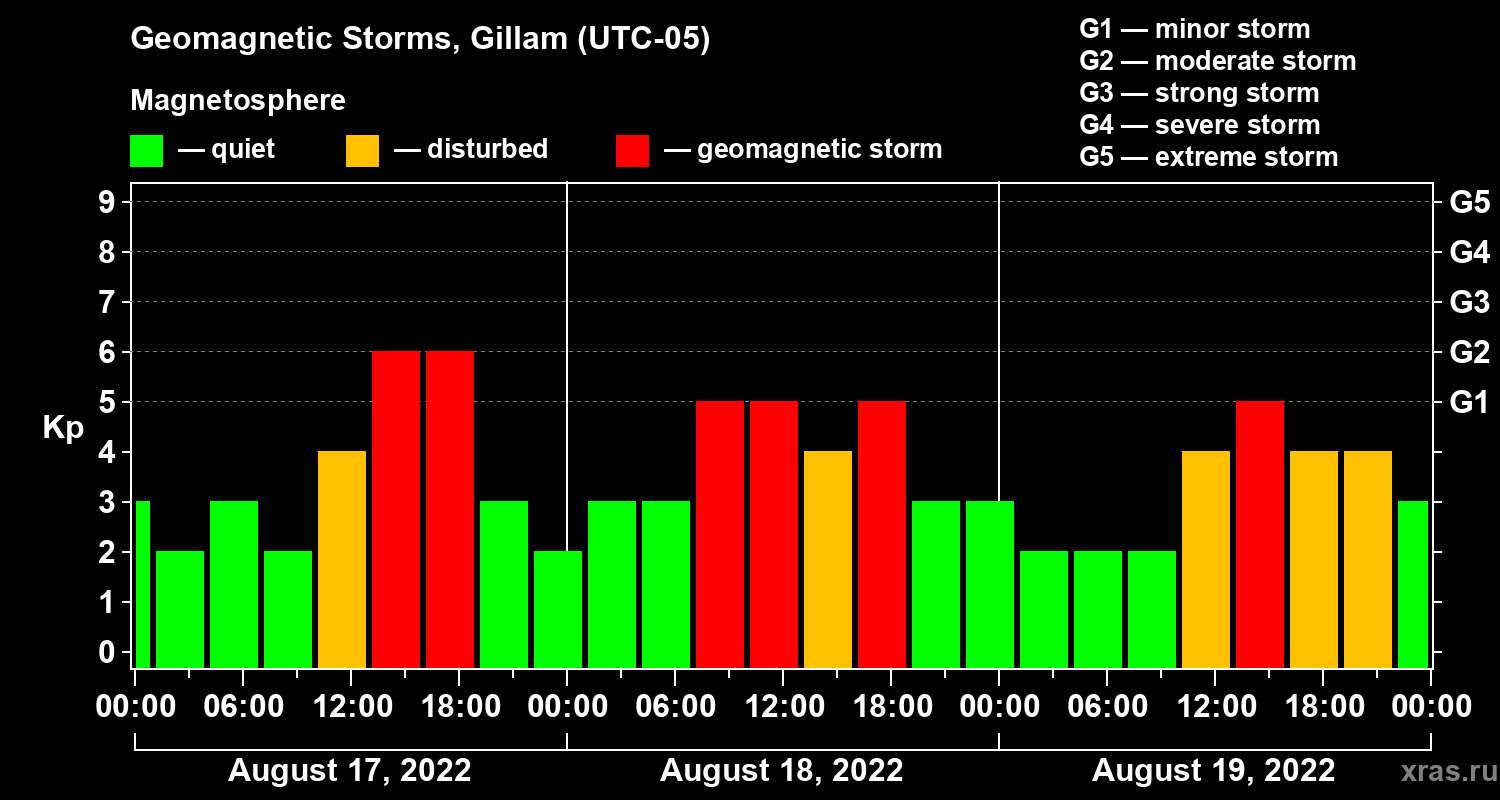 Geomagnetic storms in Gillam — Aug 19, 2022