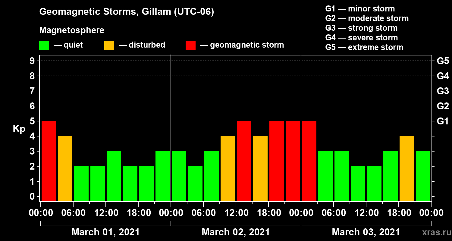 Geomagnetic storms in Gillam — Mar 03, 2021