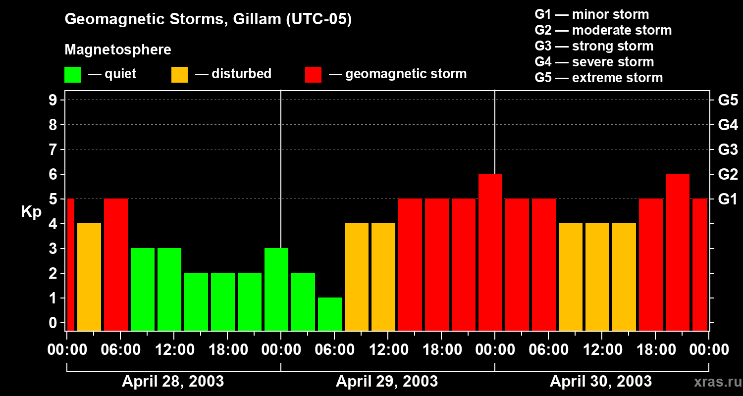 Geomagnetic storms in Gillam — Apr 30, 2003