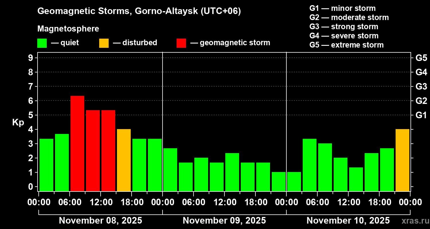 Geomagnetic storms in Gorno-Altaysk in November 2025