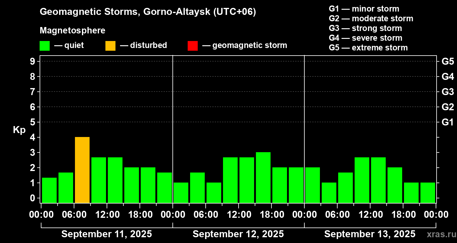 Geomagnetic storms in Gorno-Altaysk — Sep 13, 2025