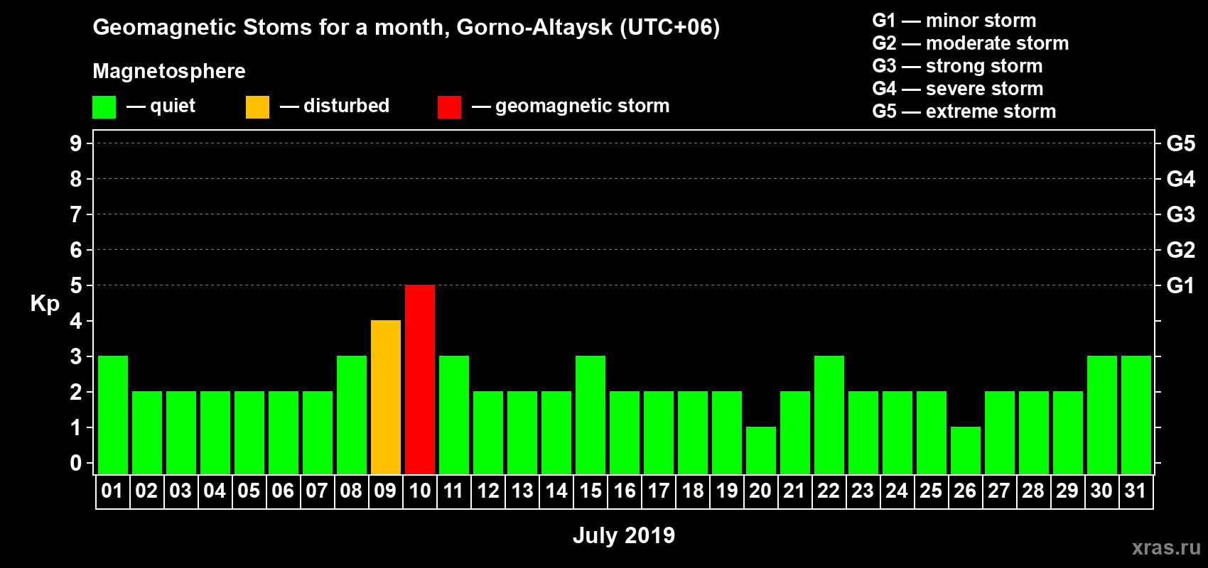 Geomagnetic storms in Gorno-Altaysk — Jul 31, 2019