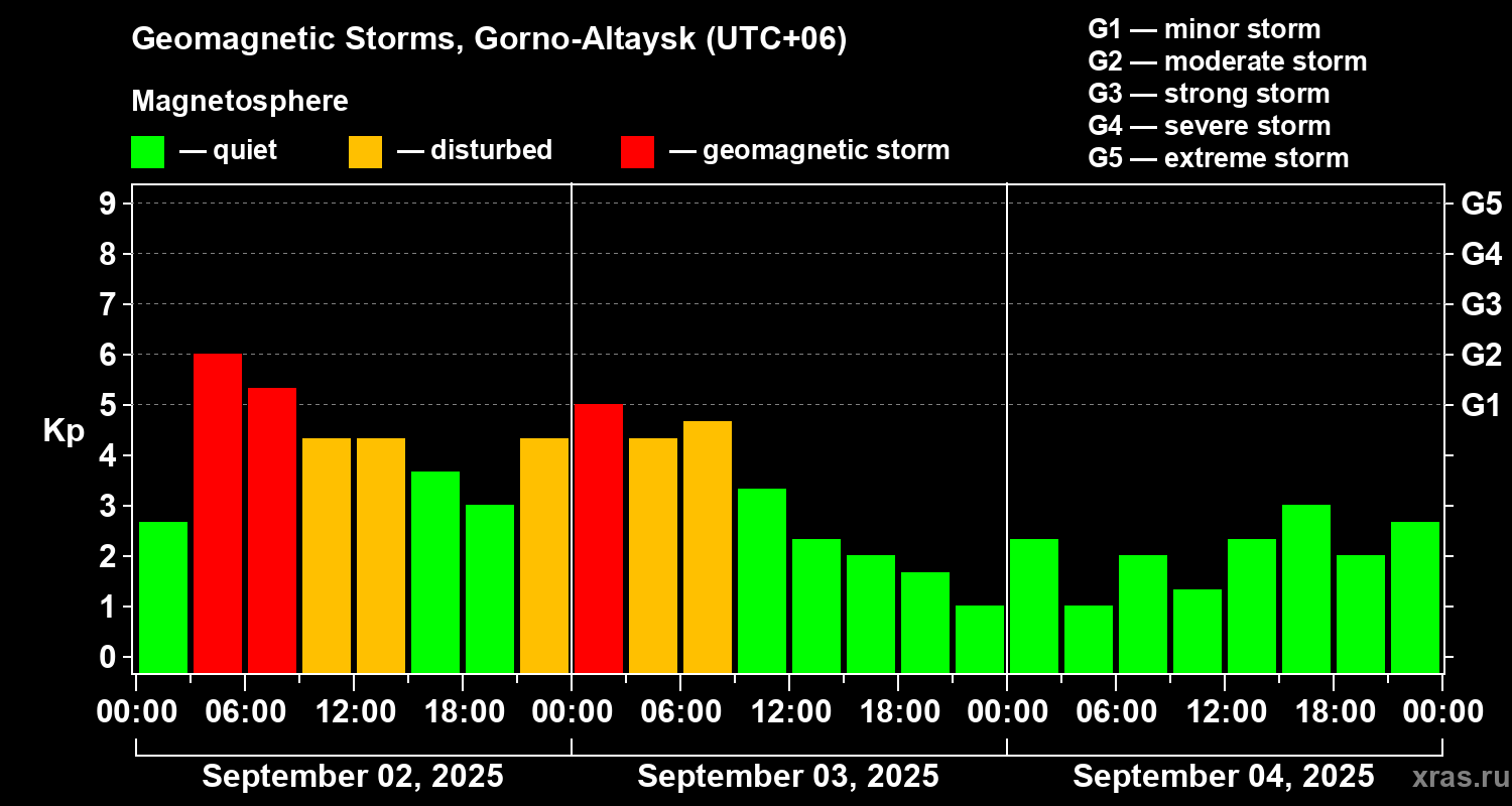 Geomagnetic storms in Gorno-Altaysk — Sep 04, 2025