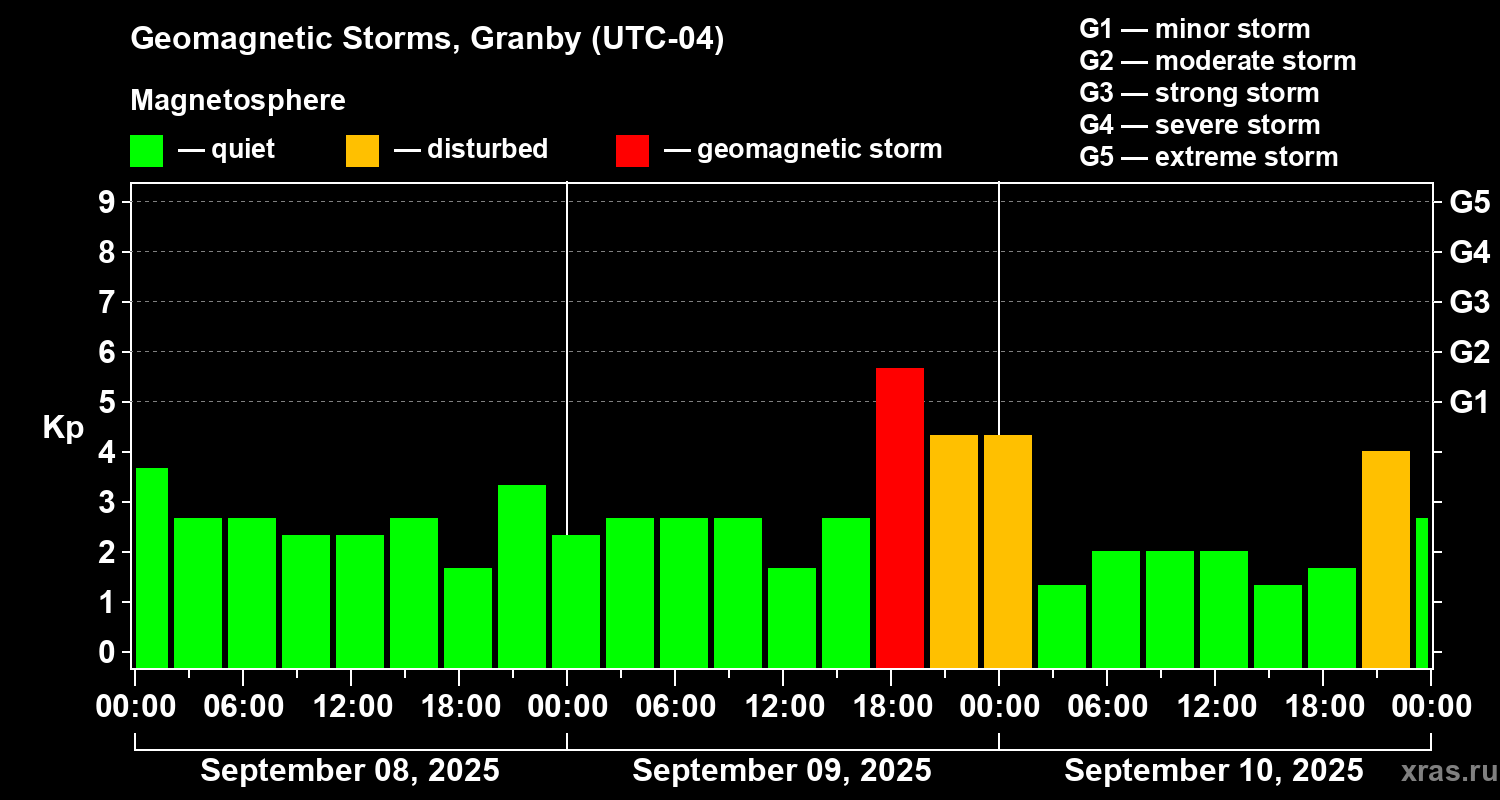 Geomagnetic storms in Granby — Sep 10, 2025