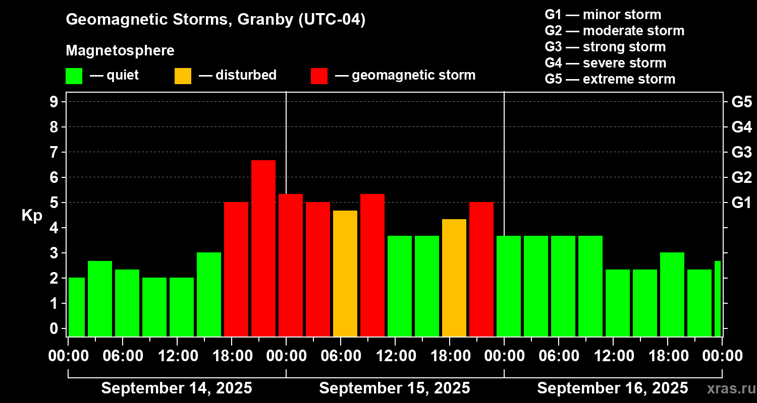 Geomagnetic storms in Granby in September 2025