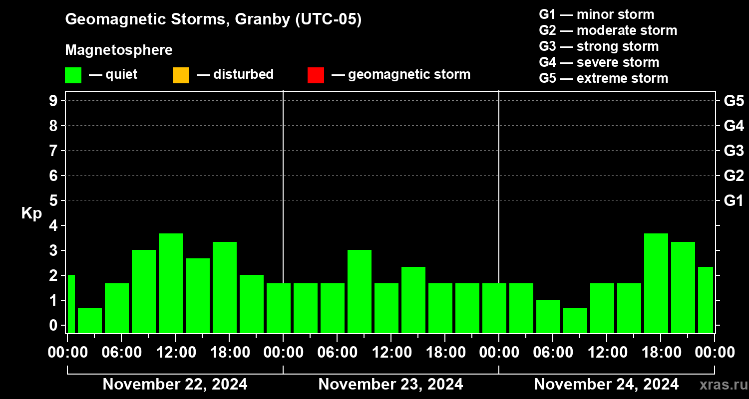 Changes in the geomagnetic index Kp from November 22 to 24, 2024 for mid latitudes