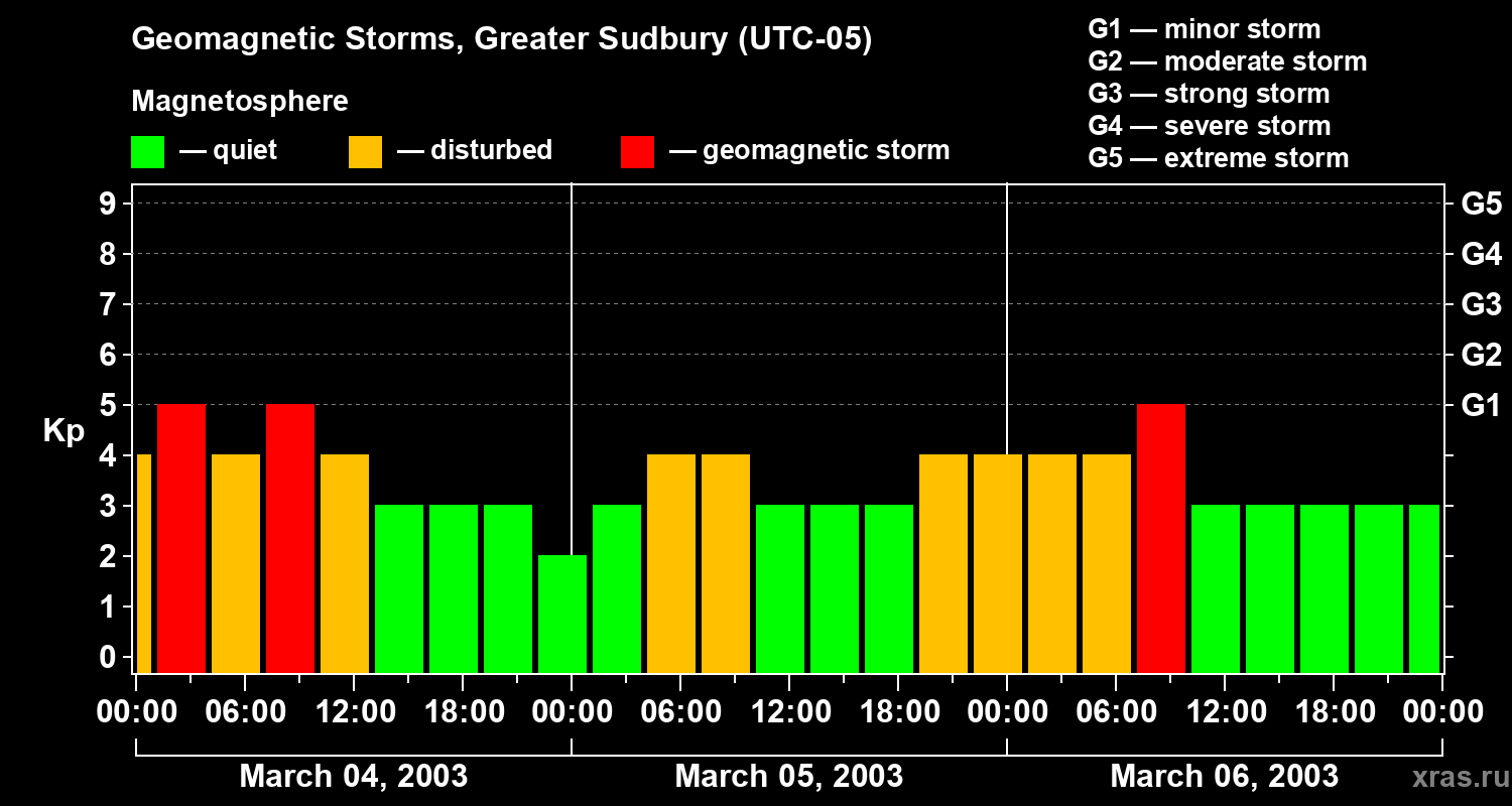 Geomagnetic storms in Greater Sudbury — Mar 06, 2003