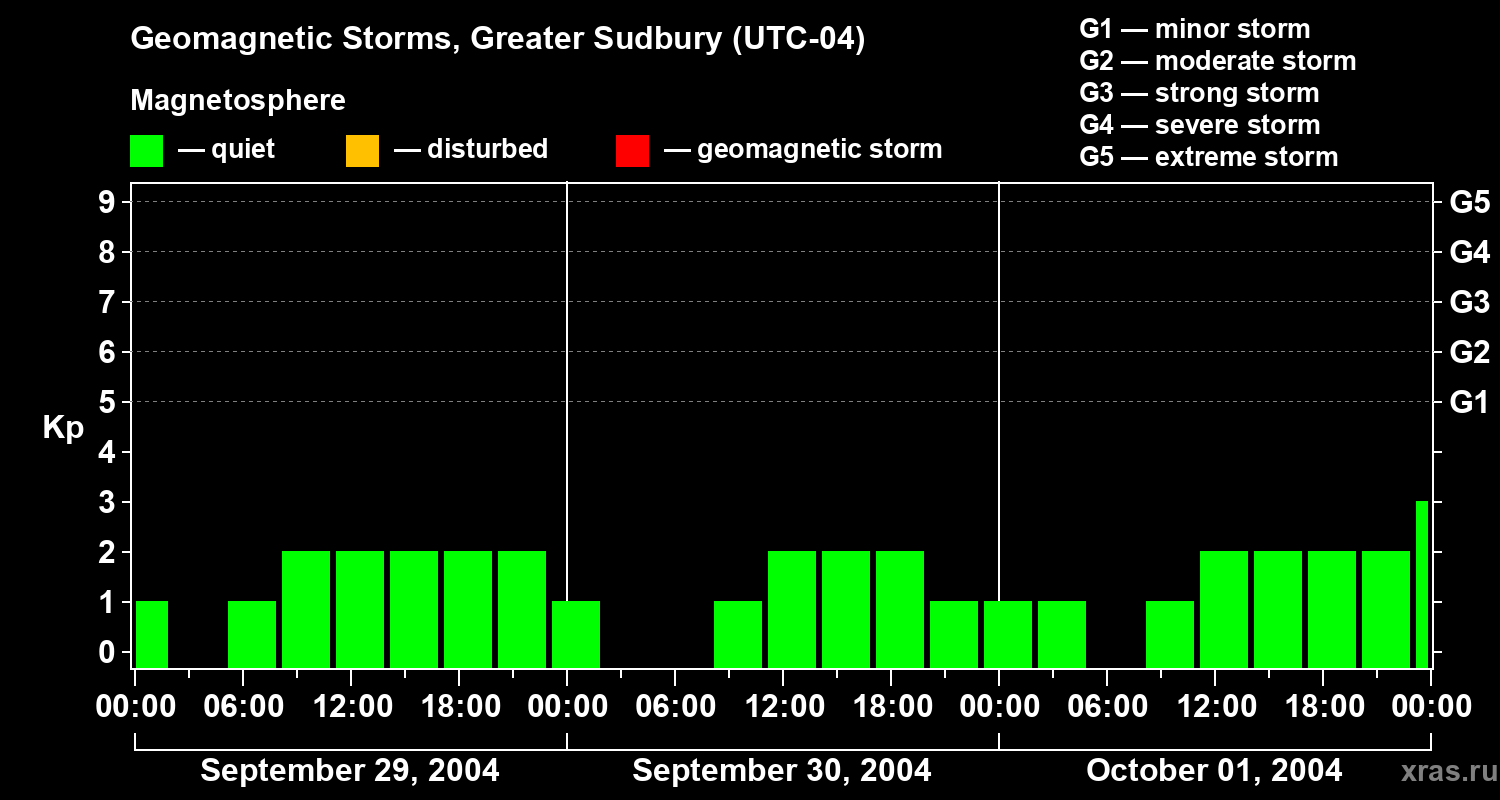 Geomagnetic storms in Greater Sudbury on Oct 01, 2004