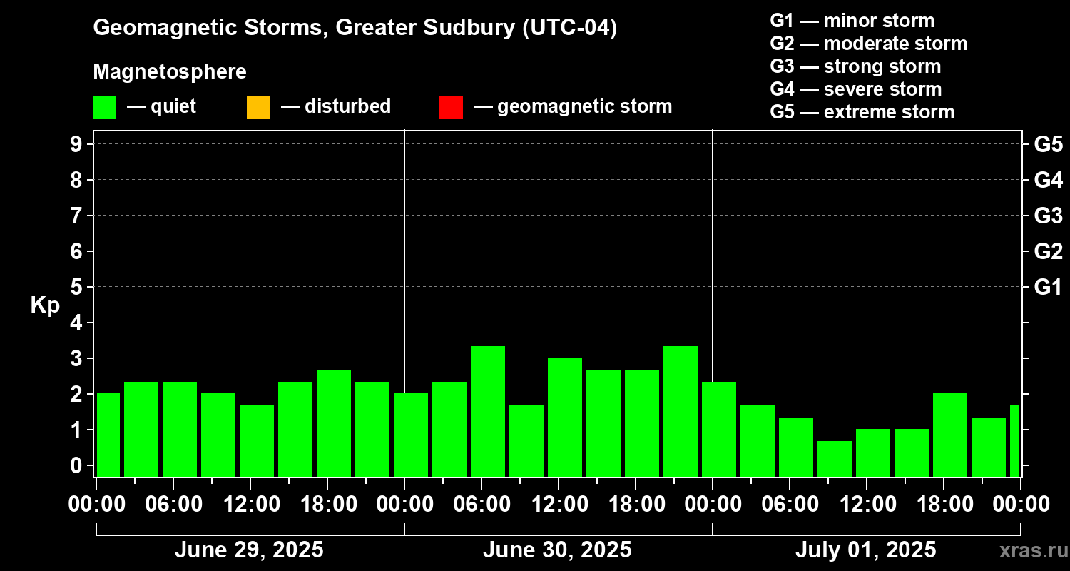 Geomagnetic storms in Greater Sudbury on Jul 01, 2025