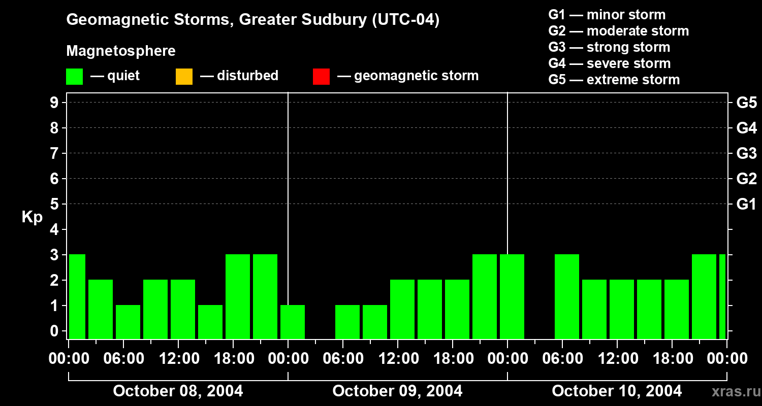 Geomagnetic storms in Greater Sudbury on Oct 10, 2004