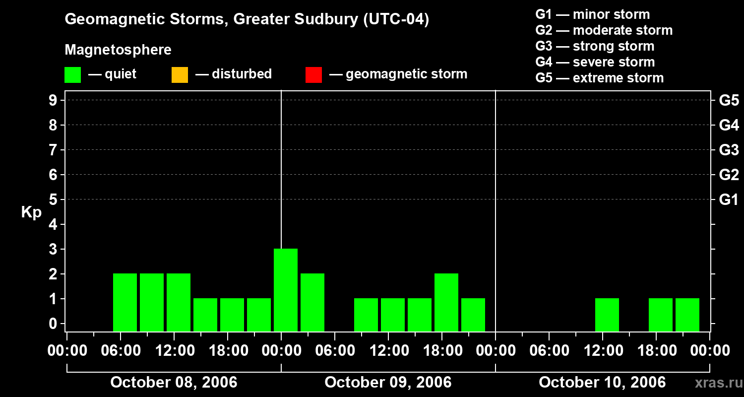 Geomagnetic storms in Greater Sudbury on Oct 10, 2006