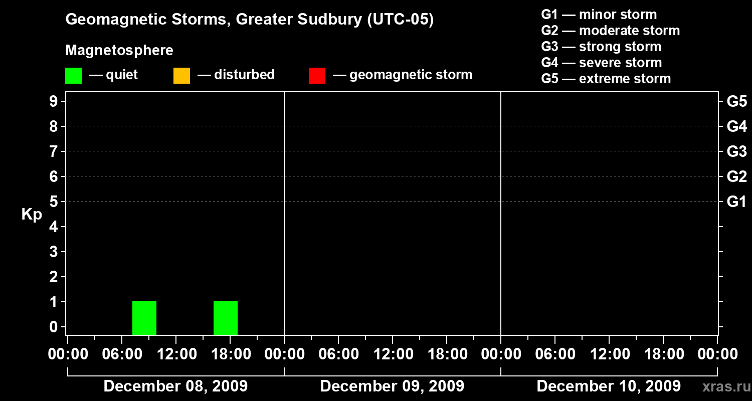 Geomagnetic storms in Greater Sudbury on Dec 10, 2009