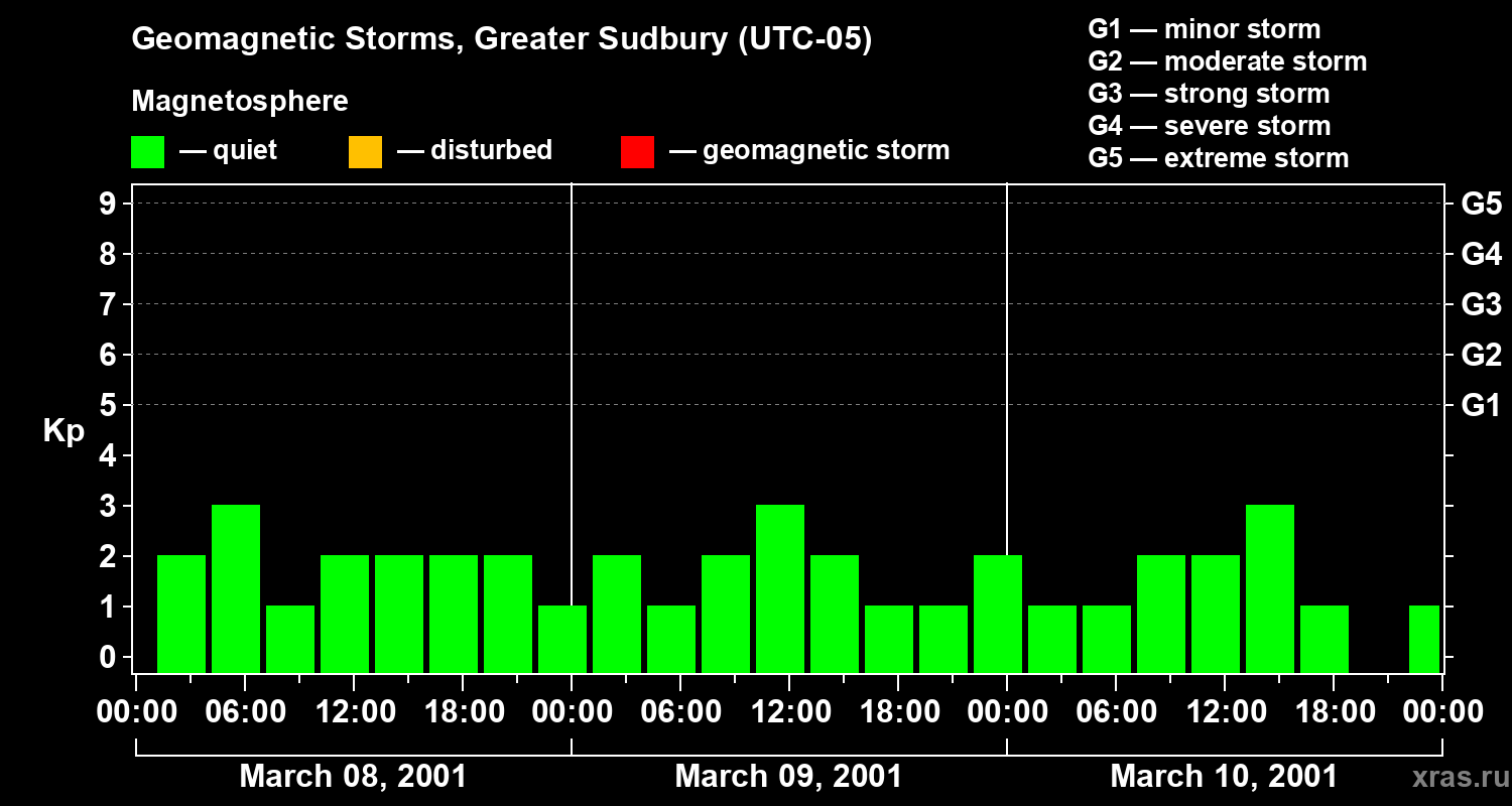 Geomagnetic storms in Greater Sudbury on Mar 10, 2001