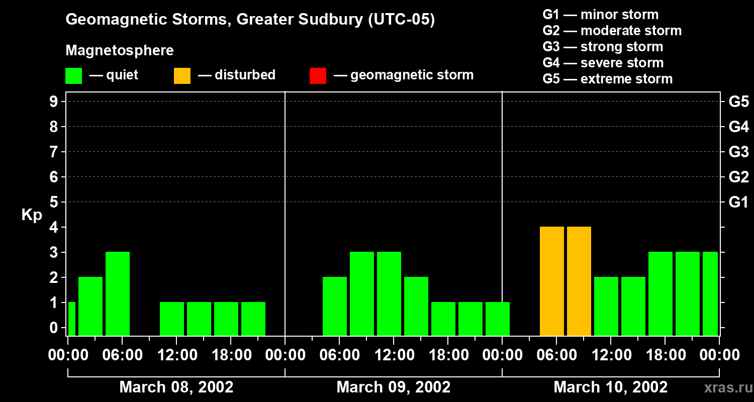 Geomagnetic storms in Greater Sudbury on Mar 10, 2002