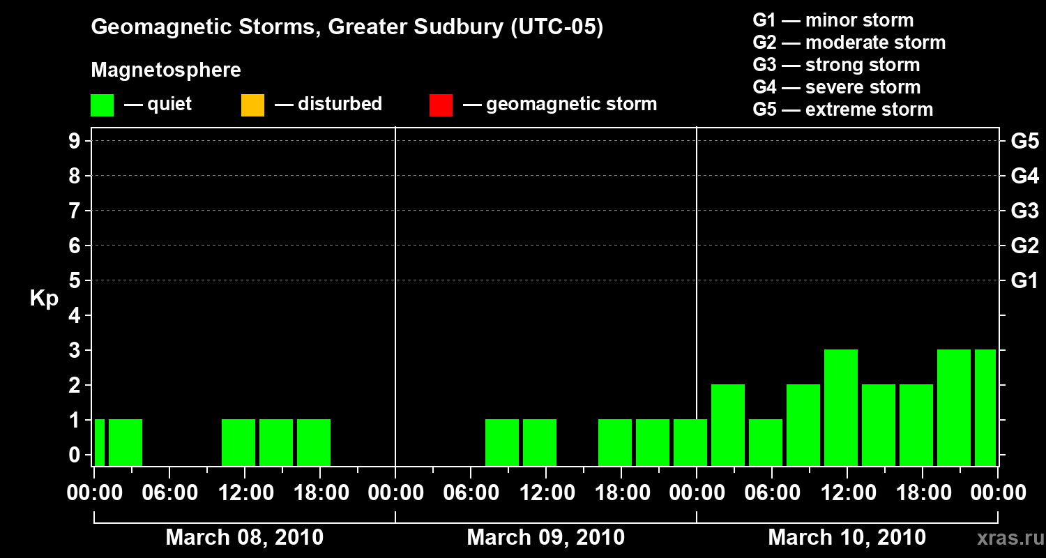 Geomagnetic storms in Greater Sudbury — Mar 10, 2010