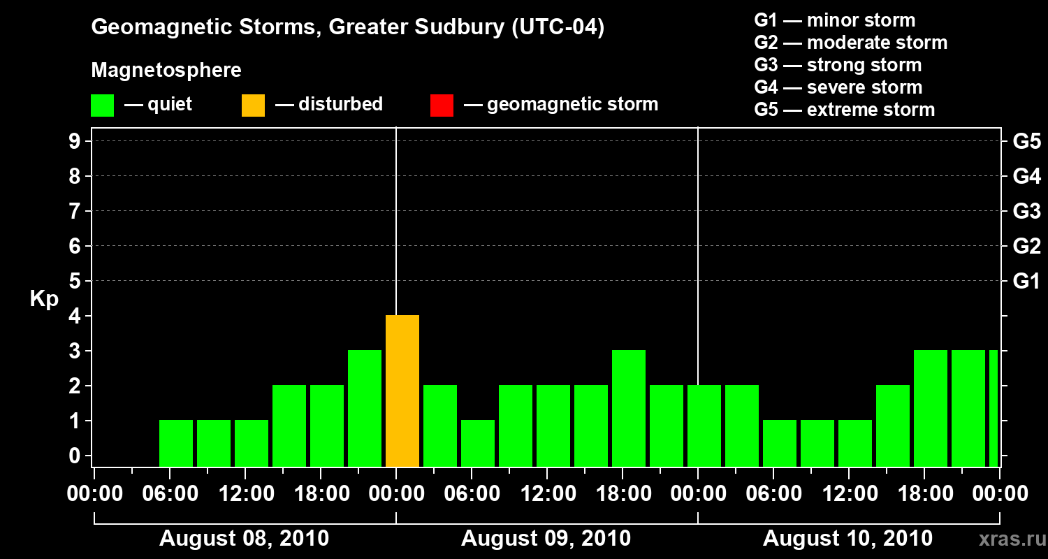 Geomagnetic storms in Greater Sudbury on Aug 10, 2010
