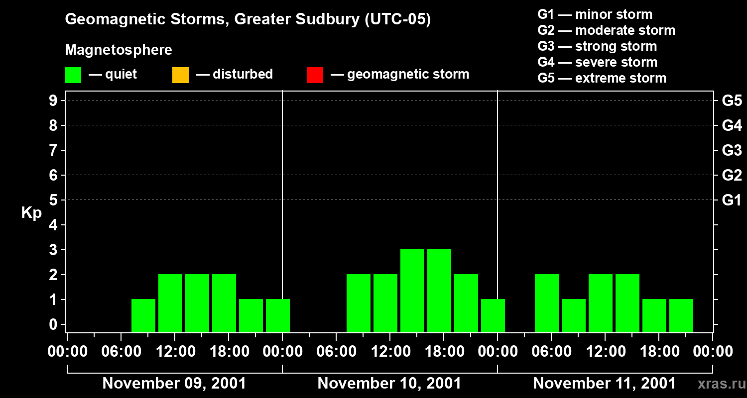 Geomagnetic storms in Greater Sudbury on Nov 11, 2001