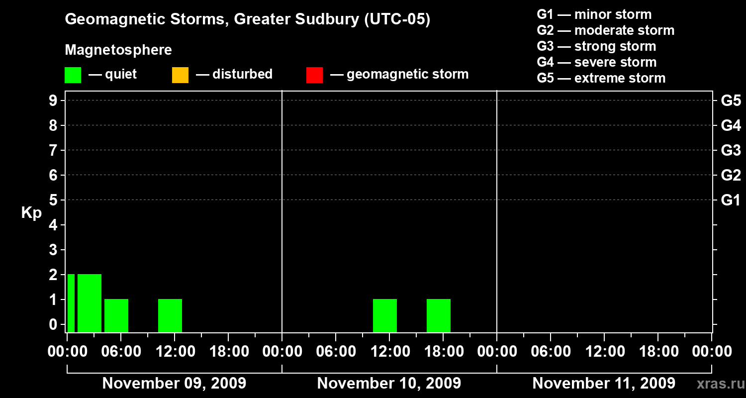 Geomagnetic storms in Greater Sudbury on Nov 11, 2009