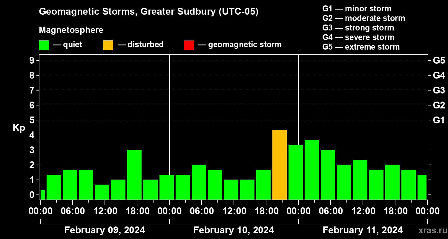 Geomagnetic storms in Greater Sudbury on Feb 11, 2024