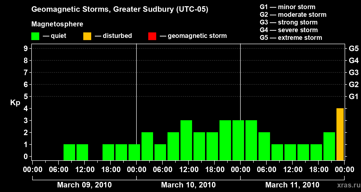 Geomagnetic storms in Greater Sudbury on Mar 11, 2010