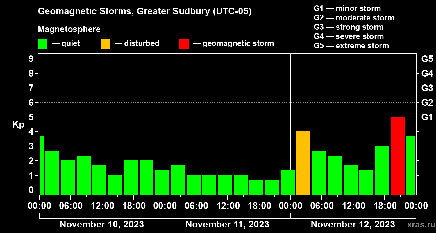 Geomagnetic storms in Greater Sudbury on Nov 12, 2023