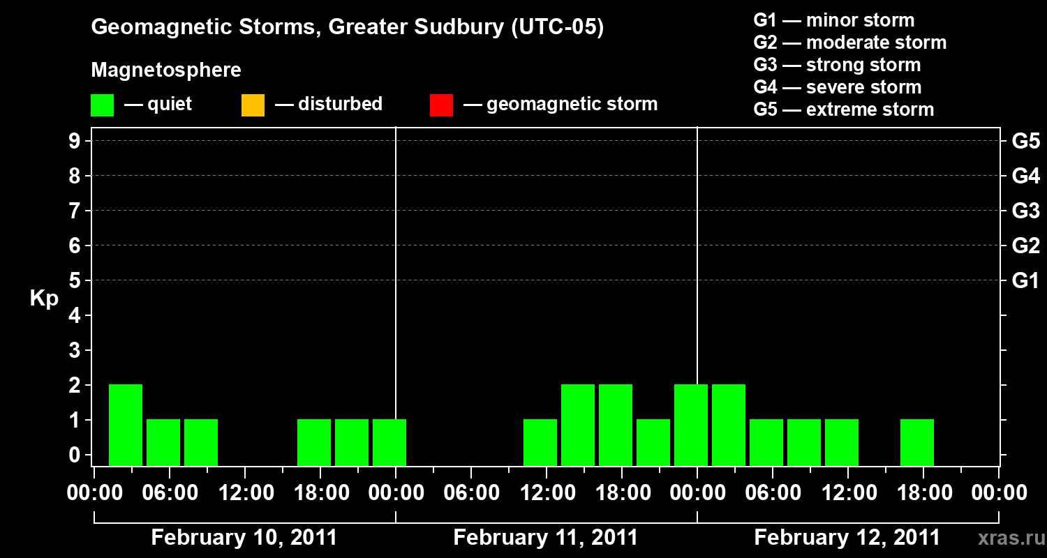 Geomagnetic storms in Greater Sudbury on Feb 12, 2011
