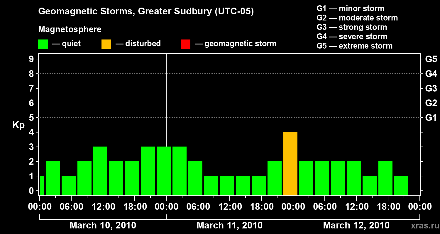 Geomagnetic storms in Greater Sudbury on Mar 12, 2010