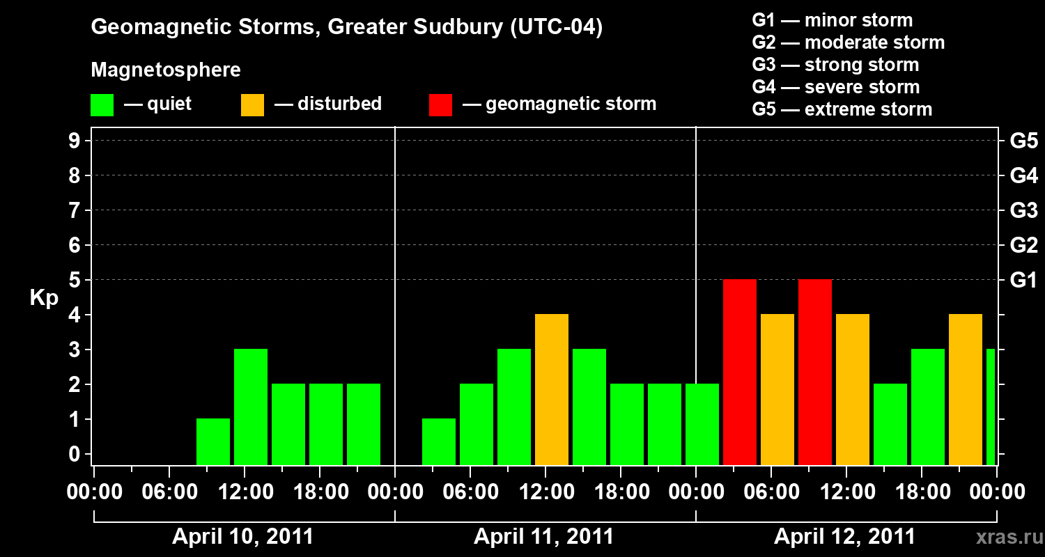Geomagnetic storms in Greater Sudbury on Apr 12, 2011