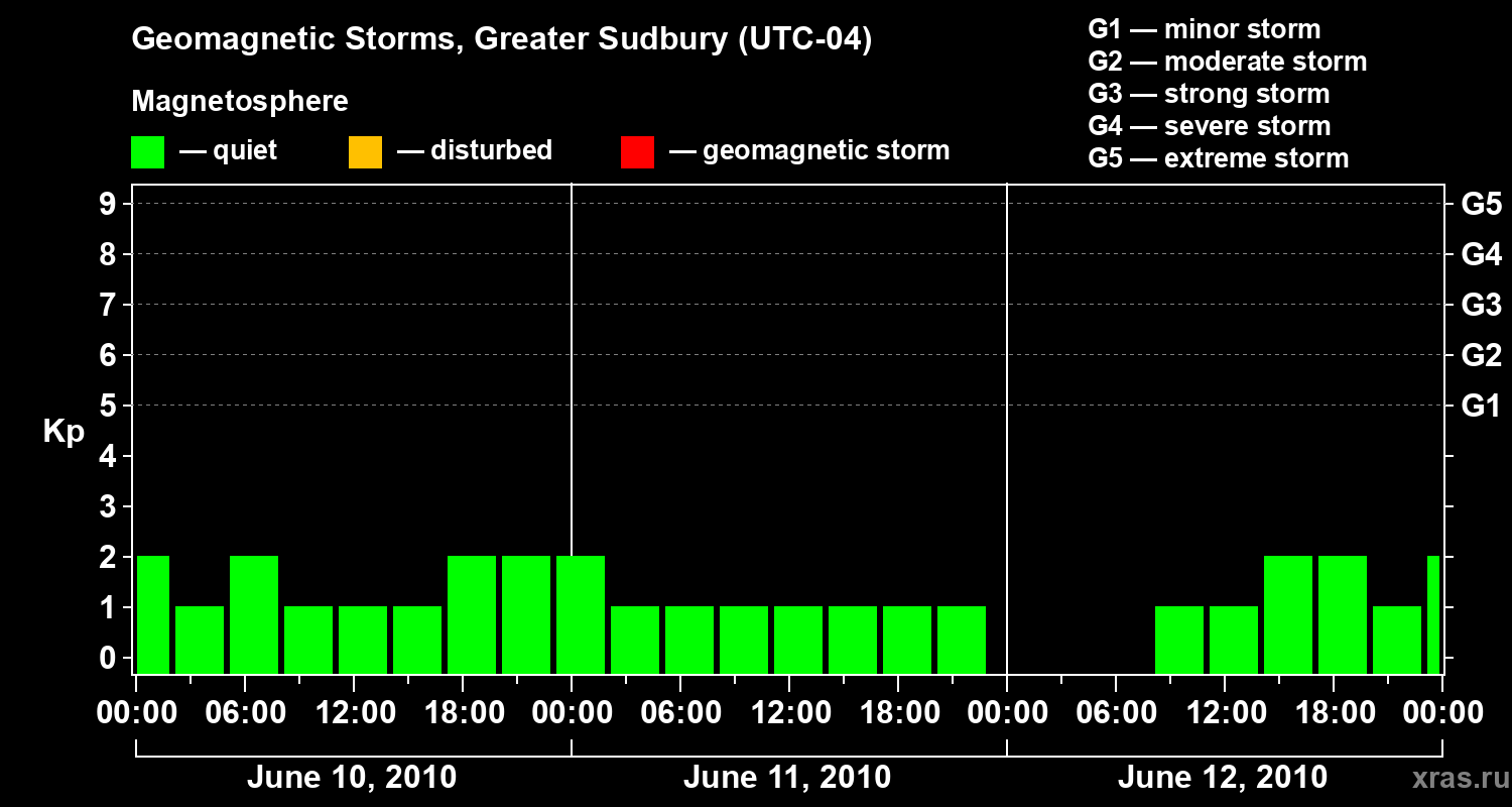 Geomagnetic storms in Greater Sudbury on Jun 12, 2010