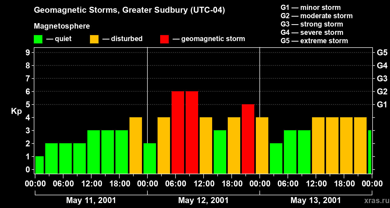 Geomagnetic storms in Greater Sudbury on May 13, 2001