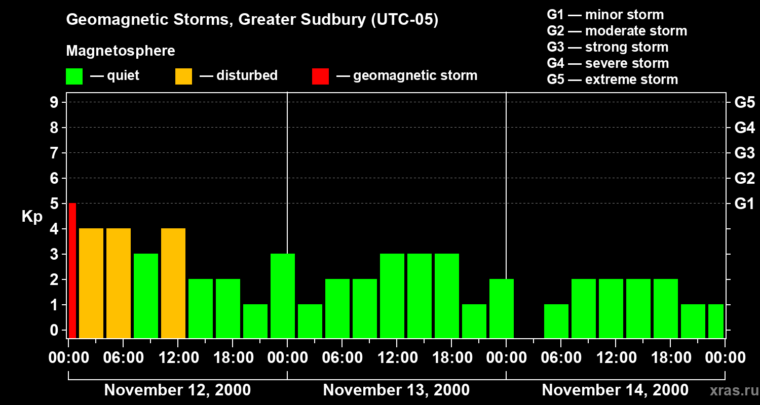 Geomagnetic storms in Greater Sudbury on Nov 14, 2000