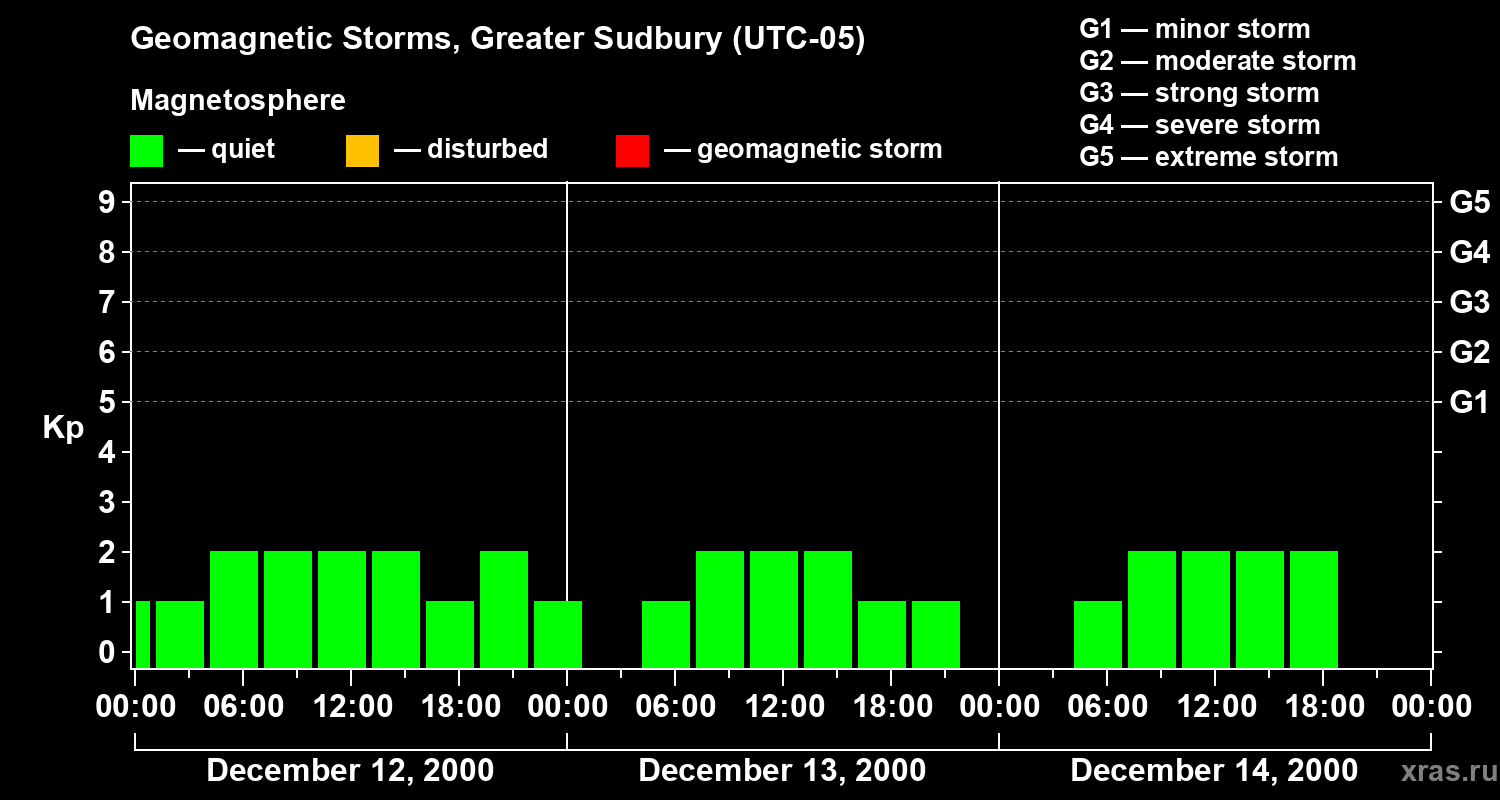 Geomagnetic storms in Greater Sudbury on Dec 14, 2000